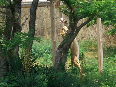 ライオンがエサにとびつく