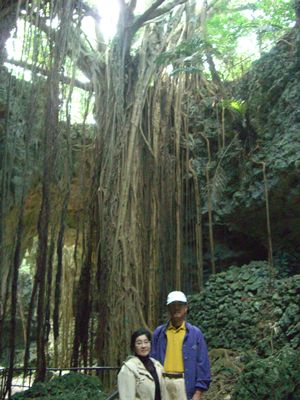新名所で鍾乳洞があり、ガジュマルの木の根っこが