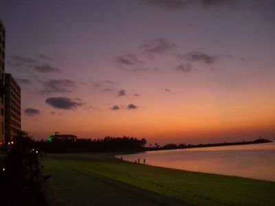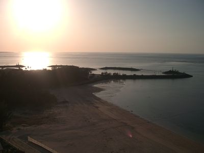 ホテルのプライベートビーチの夕陽。