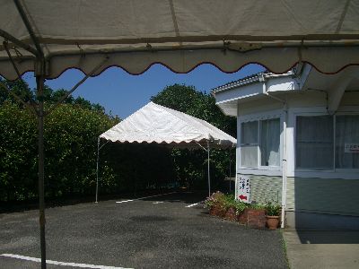 前の日に大村市の物産協会からテントを借りました。