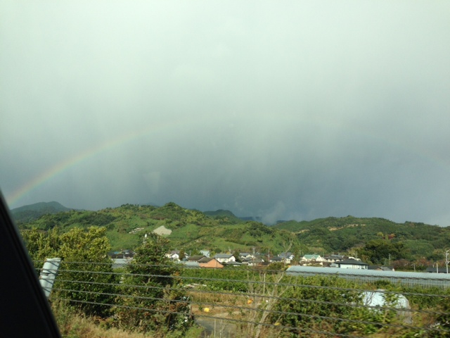 しばし癒しの画像を… 久しぶりの半円の虹です。良い事あるかなあ。