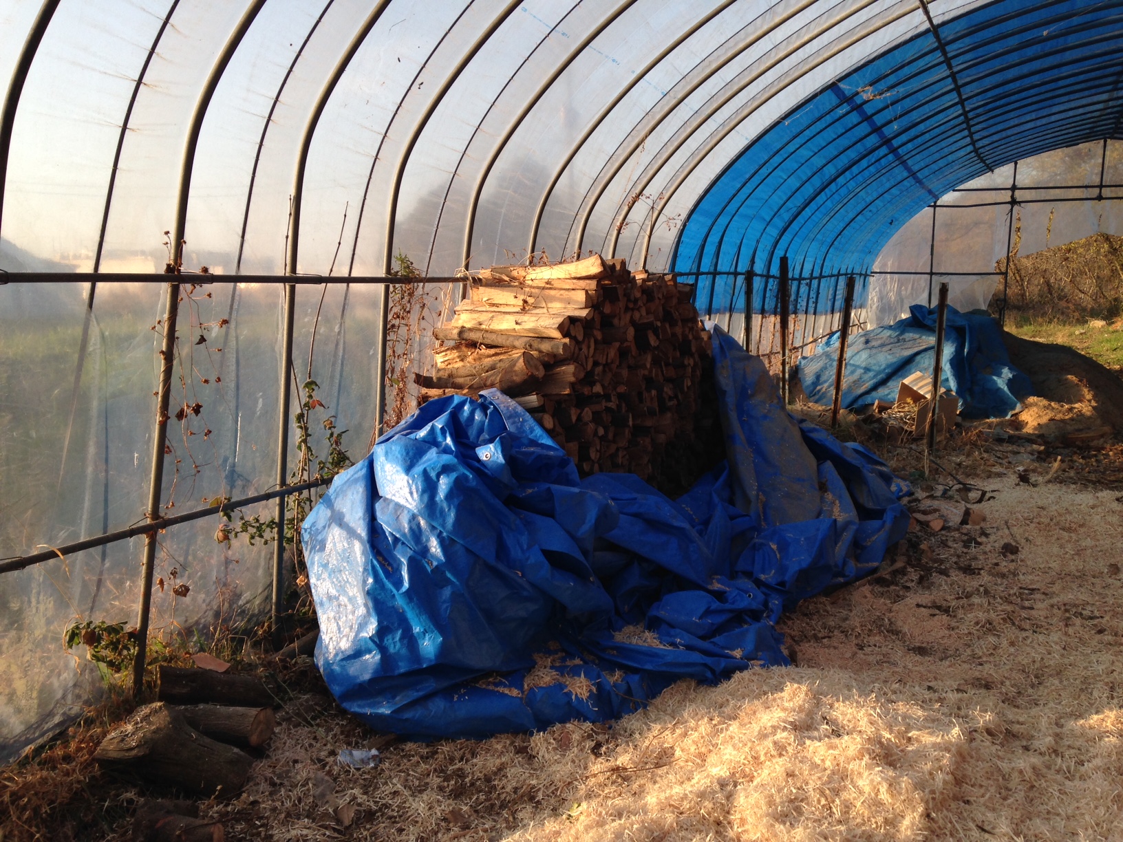 少し溜まりましたが、ハウスの両脇にいっぱいになるくらい