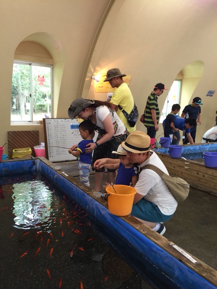 魚釣り(金魚ですが)にご満悦。
