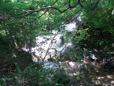 待っている間すぐ横の川で涼んでいました。