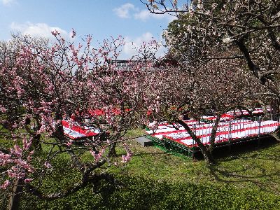 大鳥居をくぐって拝殿し、その後、曲水の宴が