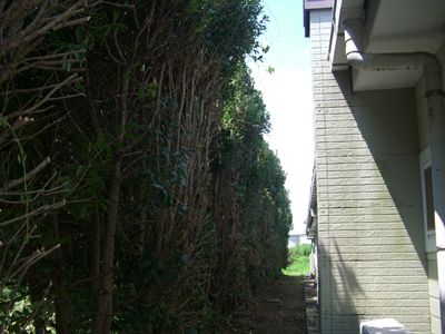 工場の前の生垣が2メートル以上も